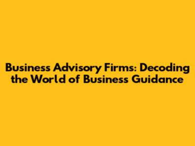 Business Advisory Firms: What They Do & Why You Need One