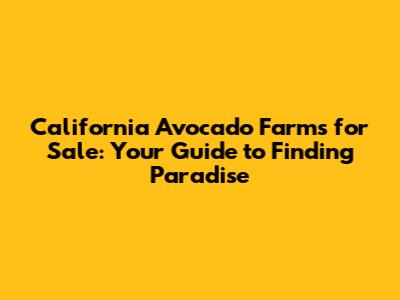 Hey there, future avocado aficionado! Dreaming of owning a piece of the Golden State and maybe, just maybe, growing your own delicious avocados? Well, you're in luck! California is a prime spot for avocado farming, and there are some amazing California avocado farms for sale just waiting for the right person. This guide is your ultimate buddy for navigating the exciting world of avocado farms for sale in California, helping you find your slice of paradise. We'll dive into everything from prime locations to what to expect when you're scouting for your perfect avocado haven. Ready to get started? Let's go!