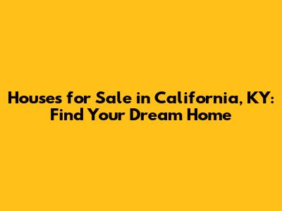 California, KY Homes For Sale: Find Your Dream House