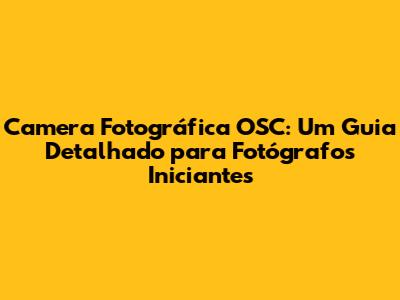Camera Fotográfica OSC: Guia Completo Para Iniciantes