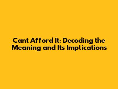 Can't Afford It? Unpacking The Meaning & Implications