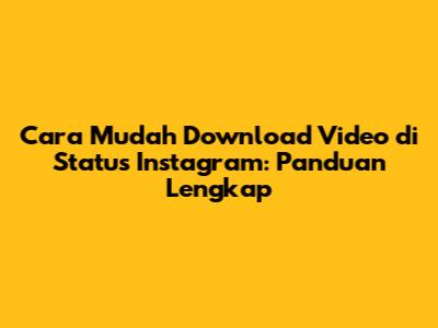 Cara Mudah Download Video Di Status Instagram: Panduan Lengkap