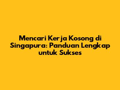Cari Kerja Kosong Di Singapura: Panduan Lengkap