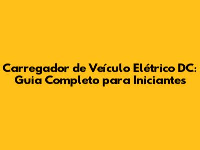 Carregador De Veículo Elétrico DC: Guia Completo Para Iniciantes