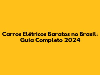 Carros Elétricos Baratos No Brasil: Guia Completo 2024