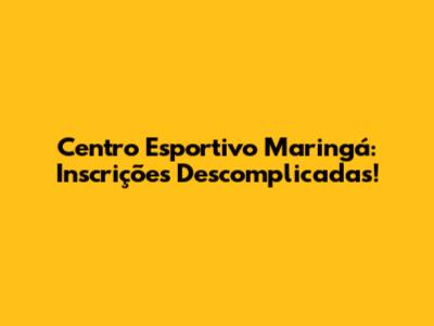 Centro Esportivo Maringá: Inscrições Descomplicadas!