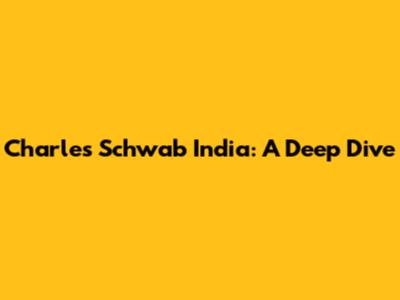 Charles Schwab India: A Deep Dive