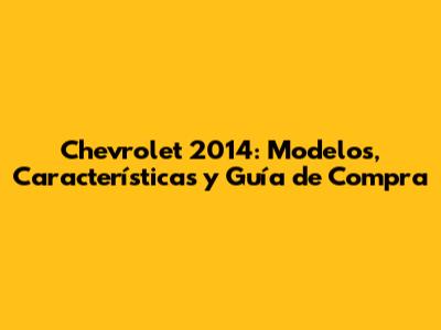 Chevrolet 2014: Modelos, Características Y Guía De Compra