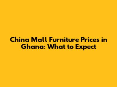 China Mall Furniture Prices In Ghana: What To Expect