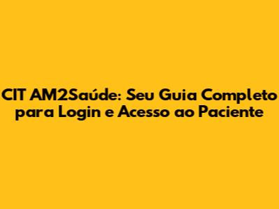 Como Fazer Login no CIT AM2Saúde: Passo a Passo