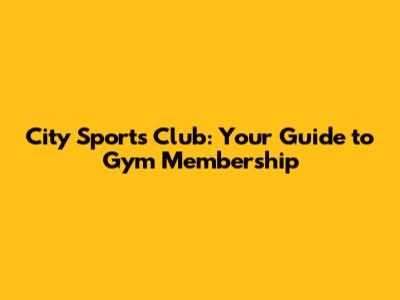 City Sports Club: Your Guide To Gym Membership