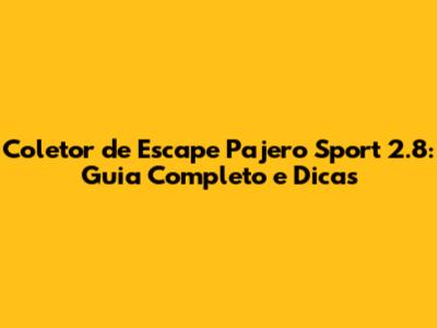 Coletor De Escape Pajero Sport 2.8: Guia Completo E Dicas