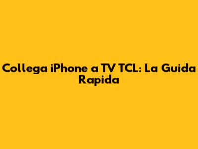Collega IPhone A TV TCL: La Guida Rapida