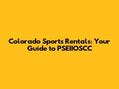 Colorado Sports Rentals: Your Guide To PSEIIOSCC