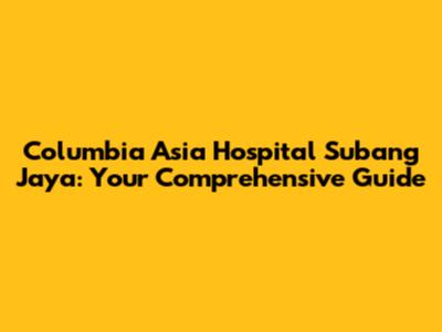 Hey guys! Let's dive into everything you need to know about Columbia Asia Hospital Subang Jaya. This hospital isn't just another healthcare facility; it's a cornerstone of the community, offering a wide array of medical services with a focus on patient-centric care. Whether you're a resident of Subang Jaya or just looking for top-notch medical attention, understanding what Columbia Asia Hospital offers is super important. In this guide, we’ll explore its services, specialties, facilities, and why it stands out as a leading healthcare provider in the region.