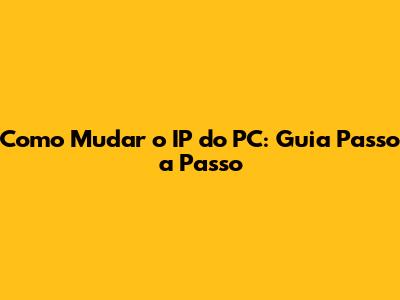 Como Mudar O IP Do PC: Guia Passo A Passo