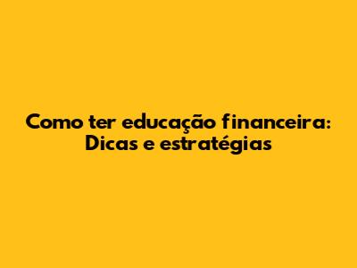 Como Ter Educação Financeira: Dicas E Estratégias