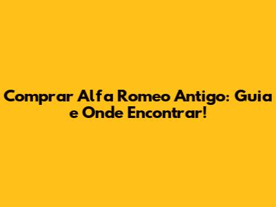 Comprar Alfa Romeo Antigo: Guia E Onde Encontrar!