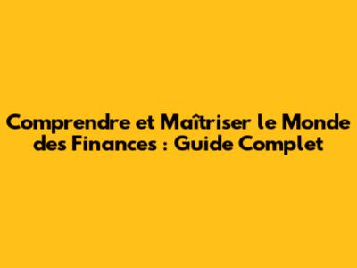 Comprendre Et Maîtriser Le Monde Des Finances : Guide Complet