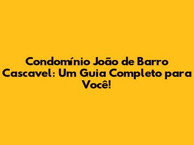 Condomínio João De Barro Cascavel: O Guia Definitivo