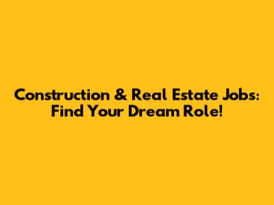 Construction & Real Estate Jobs: Find Your Dream Role!