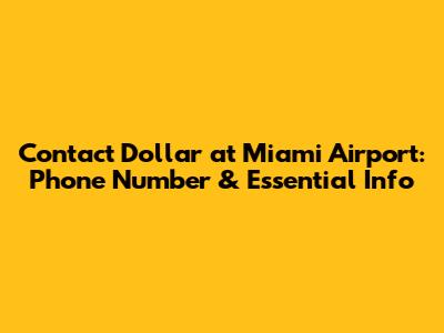 Contact Dollar At Miami Airport: Phone Number & Info