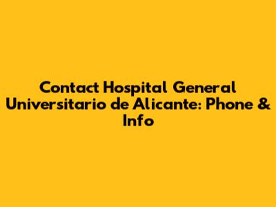 Contact Hospital General Universitario De Alicante: Phone & Info