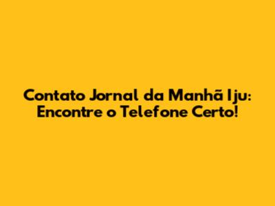 Contato Jornal Da Manhã Iju: Encontre O Telefone Certo!