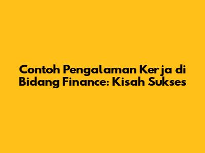 Contoh Pengalaman Kerja Di Bidang Finance: Kisah Sukses