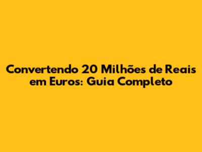 Convertendo 20 Milhões De Reais Em Euros: Guia Completo