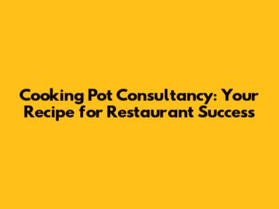 Cooking Pot Consultancy: Your Recipe For Restaurant Success