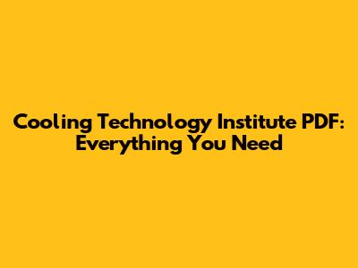 Cooling Technology Institute (CTI) PDF: Everything You Need