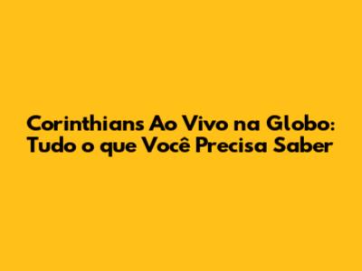 Corinthians Ao Vivo Na Globo: Onde Assistir Aos Jogos