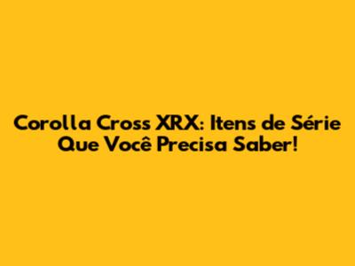Além disso, o Corolla Cross XRX pode ter alguns itens de série que variam de acordo com o ano e a versão. Por isso, é sempre bom consultar a ficha técnica do carro para verificar os itens de série específicos da versão que você está interessado. Alguns itens opcionais também podem estar disponíveis, como pintura metálica ou perolizada, teto solar elétrico e outros acessórios que personalizam o carro.