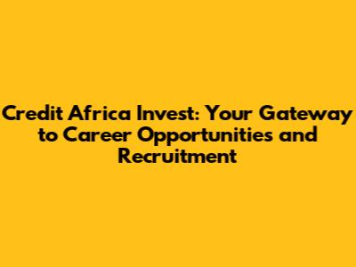 Credit Africa Invest: Career Opportunities & Recruitment