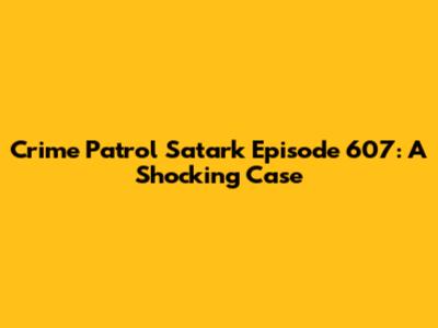 Why Crime Patrol Satark Episode 607 Matters