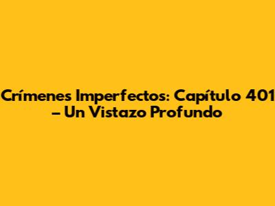 ¡Hola a todos, fanáticos de Crímenes Imperfectos! Prepárense porque vamos a sumergirnos en el capítulo 401. Este episodio, como todos los anteriores, nos promete giros inesperados, personajes intrigantes y, por supuesto, esos crímenes que nos mantienen al borde del asiento. ¿Listos para desentrañar los misterios que nos tiene preparados? ¡Vamos allá!