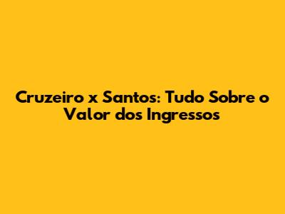 Cruzeiro X Santos: Quanto Custa O Ingresso?