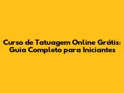 Curso De Tatuagem Online Grátis: Guia Completo Para Iniciantes