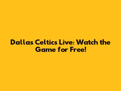 Dallas Celtics Live: Watch The Game For Free!