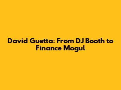 David Guetta: From DJ Booth To Finance Mogul