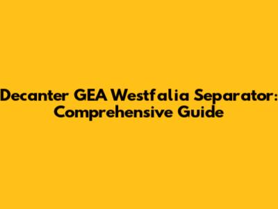 Decanter GEA Westfalia Separator: Comprehensive Guide