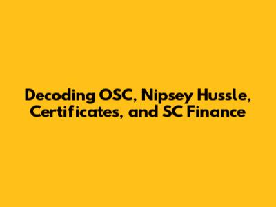 Decoding OSC, Nipsey Hussle, Certificates, And SC Finance