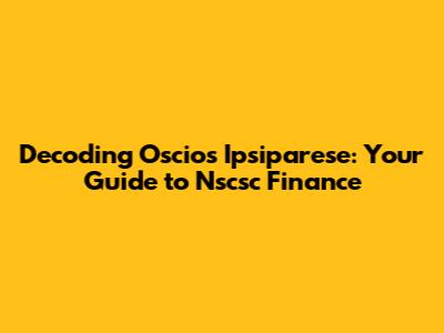 Decoding Oscios Ipsiparese: Your Guide To Nscsc Finance