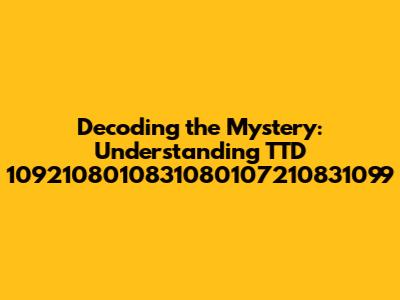 Decoding The Mystery: Understanding TTD 1092108010831080107210831099