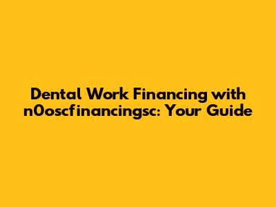 Dental Work Financing With N0oscfinancingsc: Your Guide