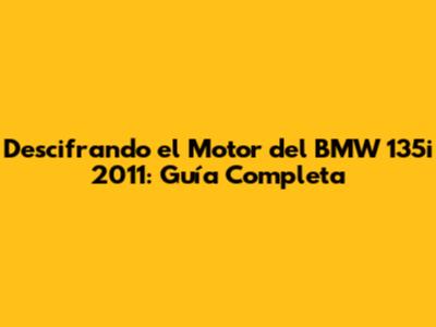 Descifrando El Motor Del BMW 135i 2011: Guía Completa
