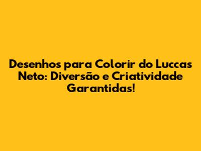 Desenhos Para Colorir Do Luccas Neto: Diversão E Criatividade Garantidas!