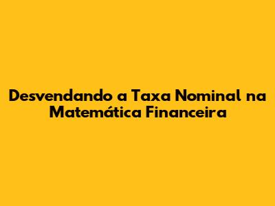 Desvendando A Taxa Nominal Na Matemática Financeira