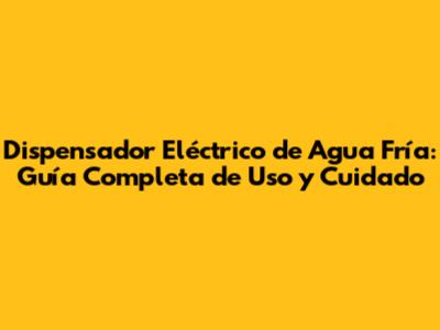 Dispensador Eléctrico De Agua Fría: Guía Completa De Uso Y Cuidado